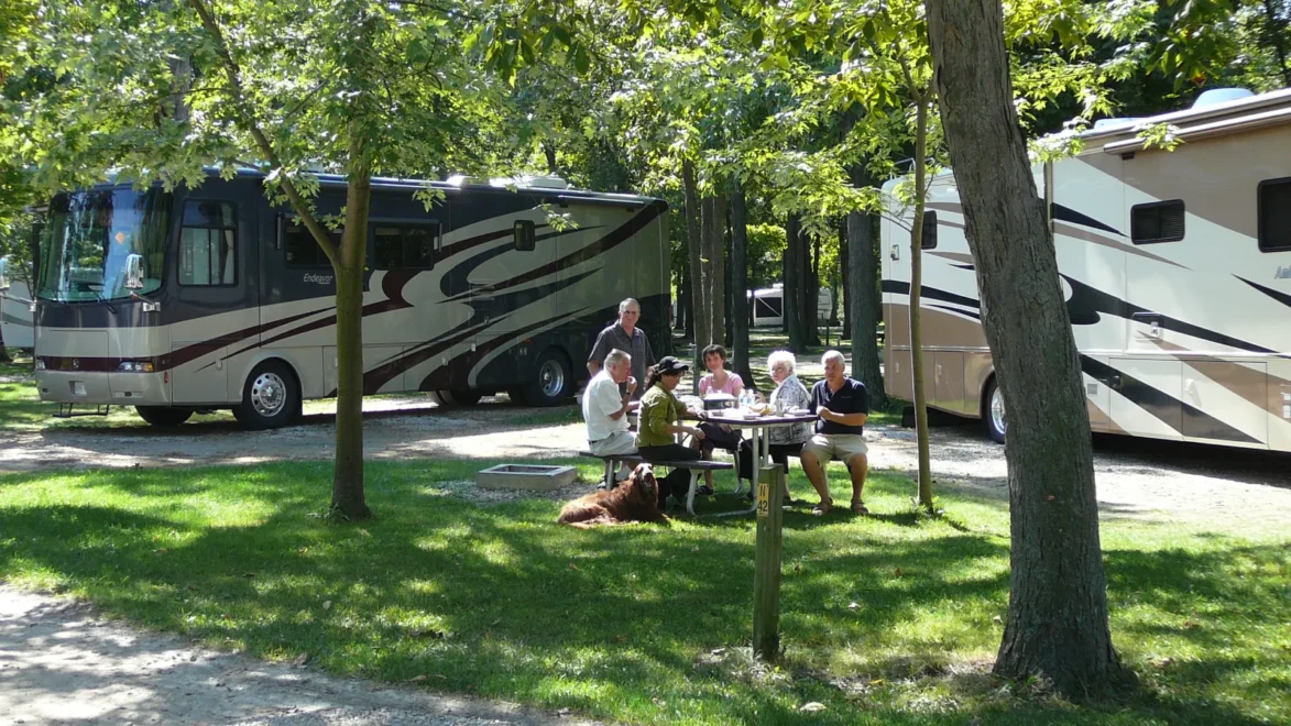 Overnight and seasonal camping, 324 shaded sites, 1200ft Lake Erie beach, sewers, 30/50amps, municipal water. Pull thrus, gravel drives, camping cabins, control gate, clean washrooms, store, laundromat, 4 playgrounds, LittleTykes playground, planned activities. High-speed wireless Internet throughout park. Nearby golf, boat launch. Minutes from Point Pelee National Park. CAA/AAA-approved. Good Sam rated.