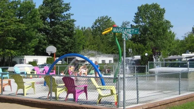 Since 1967, our award-winning campground has been providing the top family-focused camping experience. We offer exceptional facilities and outstanding service, which earned us a Woodall’s 10-star rating for cleanliness and quiet. Our sites feature paved roads, spacious concrete patios, fire pits, and picnic tables. Each site provides full hookups for your convenience. To ensure a tranquil atmosphere, we have strict rules, an 11 p.m. quiet time, a 38-foot maximum length for RVs, and narrower roads. Guests can enjoy our wide range of amenities, including an indoor pool with an adults-only hot tub, a fitness center, two covered playgrounds, and a jumping pillow. During July and August, we also offer two splash pads and two heated outdoor pools. For bookings, we require a 7-night minimum stay from July 1 to September 6 and a 4-night minimum during the spring and fall. Please visit our website for photos and seasonal offers.