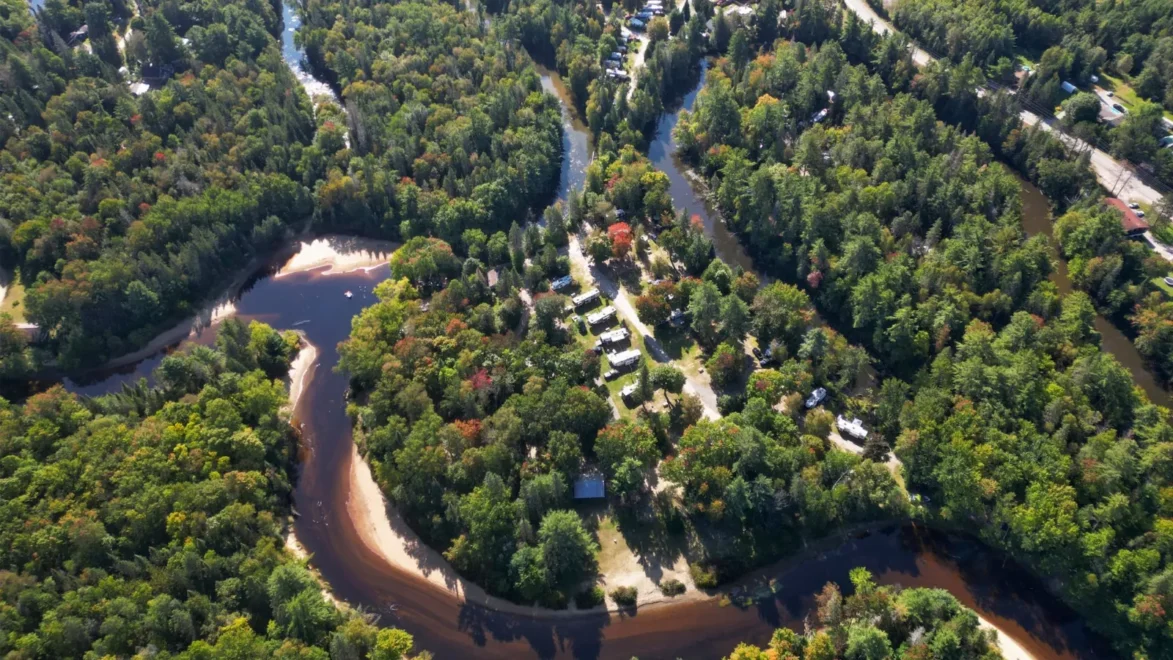 Find us in the heart of Muskoka nestled between the Big East River and two beautiful lagoons. Located just 5 minutes from downtown Huntsville and adjacent to Arrowhead Provincial Park, we are the perfect place to experience the beauty of the region. Our park offers seasonal campsites, nightly camping, cottages and tiny cottages. Enjoy our numerous waterfront sites and have a front row seat as the majestic river flows by. Alongside the river you will find impressive sand deposits you can enjoy as you play and relax on our private beach. Bring a canoe, kayak, or paddleboard and travel down the river on one of many exciting canoe route trails. Day trip into Arrowhead Provincial Park where you can mountain bike, go boating, fish at Mayflower and Arrowhead Lakes, or hike to picturesque Stubbs Falls. Be sure not to miss the chance to take in the panoramic views from the famous Big Bend Lookout. We can’t wait for you to stay with us and see why Muskoka is one of the top vacation spots!