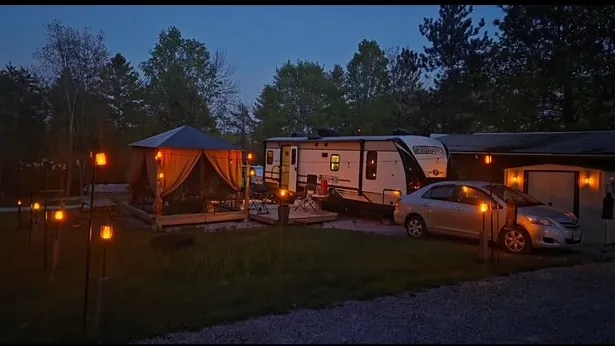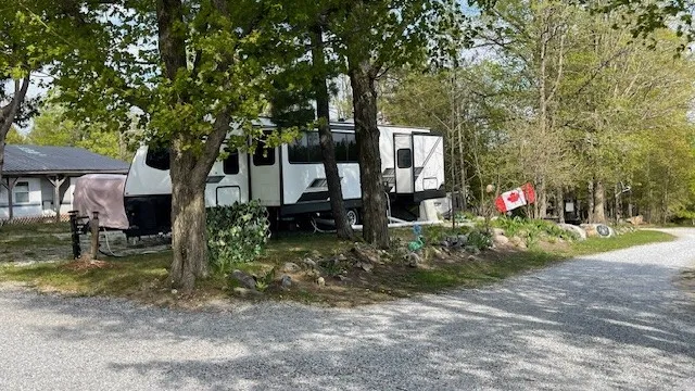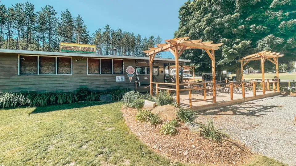 We offer a community of over 75 sites, both seasonal & transient, glamping cabins, rental trailers as well as un-serviced tent sites. We are spread across 32 acres surrounded by our lush greenery and a beautiful flowing creek. We have an onsite pool, licensed restaurant, mile long walking trail along the creek, sand volleyball, basketball, children’s playground, horseshoes, laundry and washroom/shower house, etc..