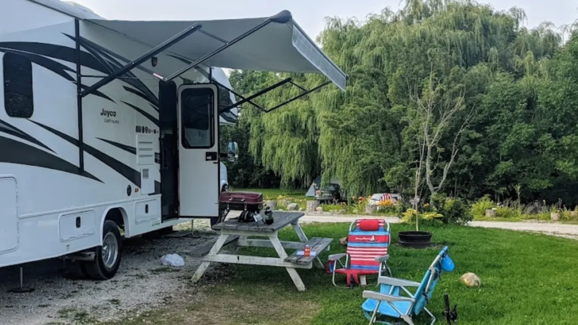 Situated in Meaford, on the Bayview Hill, facing east, our park overlooks beautiful Georgian Bay. Surrounded by lush forests and rolling hills, we are a relaxing escape for those looking to enjoy the outdoors. Our park offers seasonal campsites and nightly camping. Enjoy stunning panoramic views of the bay and watch as many sailboats, water jets and fishing boats spend the days on the water. For those who love to swim, cool off in our fantastic swimming pool, or visit one of the nearby public beaches along the bay. Outdoor enthusiasts love to explore some of the region’s best hiking and cycling trails, including access from our park to the Tom Thomson Trail. Fun activities at the park include horseshoes, beach volleyball, giant chess, giant checkers, badminton, a playground, an activity room, and planned events. For those looking to relax, the scenic countryside provides a tranquil backdrop for our guests to enjoy evenings around the campfire, watching the stars.