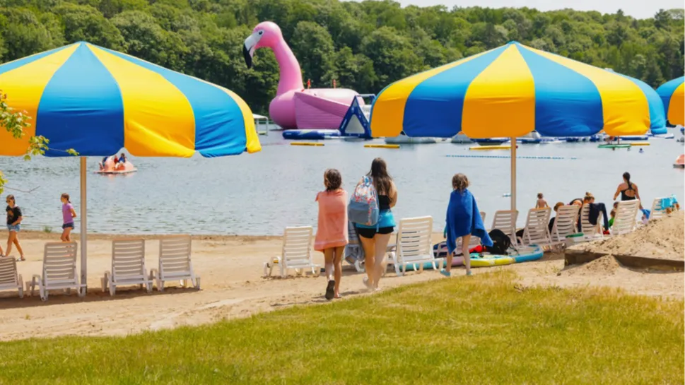 Plan your perfect getaway at Splash Valley Waterpark and Resort, the ultimate camper’s paradise. We offer an exceptional camping experience with amenities that go beyond the usual. Dive into adventure at our renowned Splash Valley Waterpark, featuring thrilling waterslides and the world’s largest floating flamingo, Mingo! Enjoy our expansive floating water playground, or relax on our private, sandy beach. For a more tranquil experience, explore our lake on a paddleboat or challenge your family to a game of mini-golf. We have a variety of camping options to suit your needs. Discover why families return to us year after year for unforgettable fun.